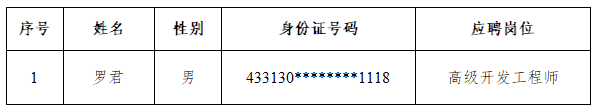 根据《湖南省高速公路集团有限公司总部及所属分子公司2023年第二批公开招聘公告》的要求,经报名、资格审查、笔试、面试、心理测试、体检、背景调查和研究决定,确定以下1人为湖南高速信息科技有限公司拟聘用人员,现进行公示。