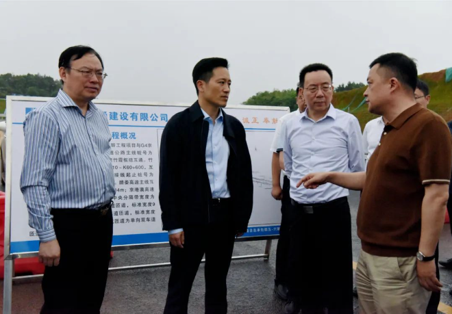 刘扬(左二)一行在醴娄高速株洲段竹霞互通调研