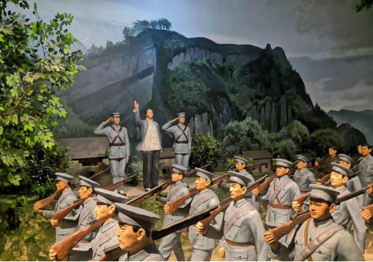 在铜鼓县城,毛泽东向三团传达秋收起义精神。吕高安摄于铜鼓秋收起义纪念馆