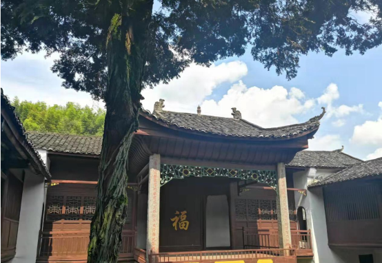 排埠有个万寿宫。一幢砖木四合院沿修河而立,其进深两栋,前栋戏台,延伸的石板路,光滑可鉴,衬托万寿宫的沧桑古朴。日前,我走进万寿宫,一对石柱镌刻着长长的对联,上联“仙到”、上联“真谛”格外爽眼。这是乾隆年间,当地纪念许仙真君许逊修建的道观。