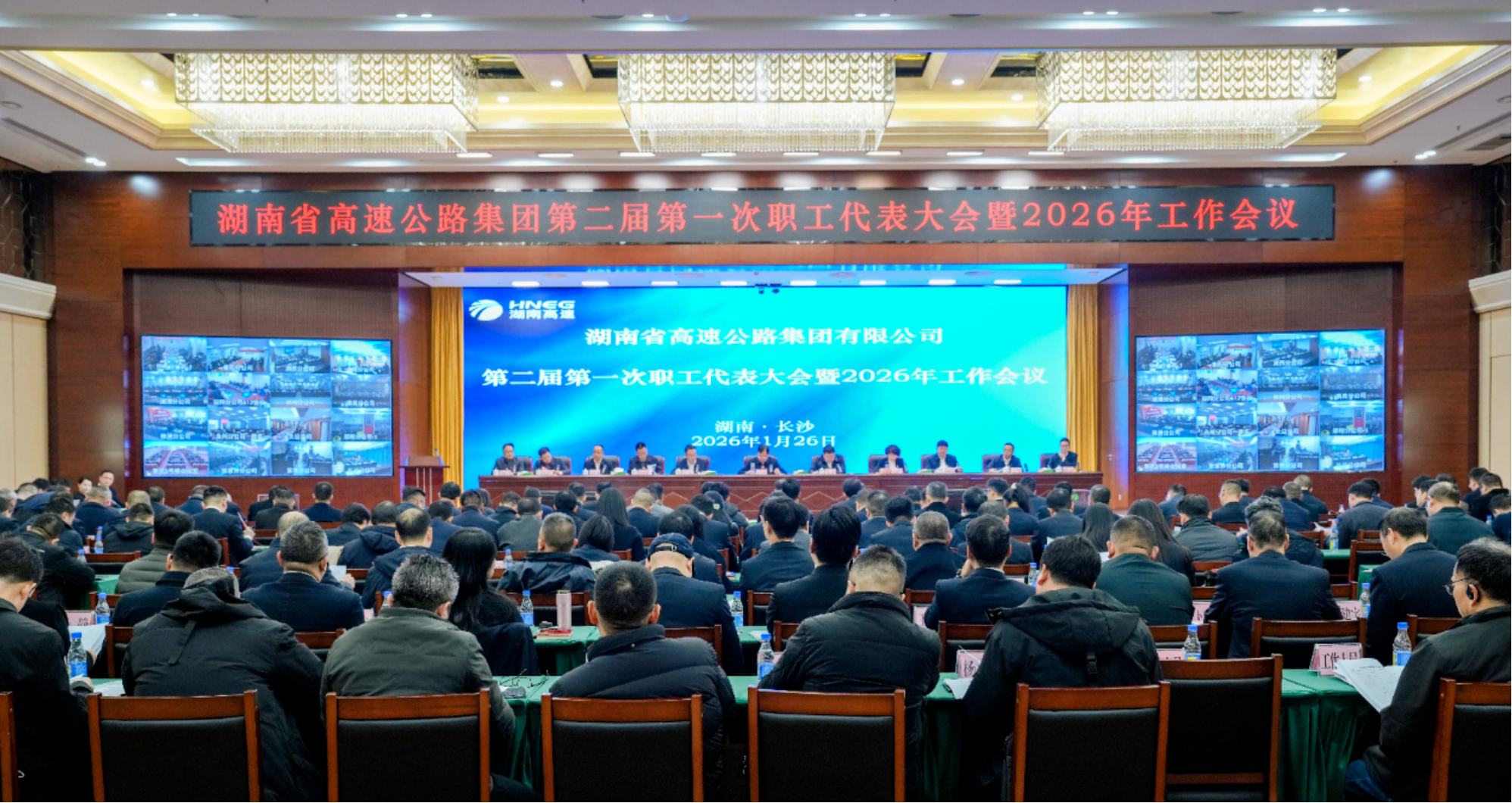 1月26日上午,湖南省高速公路集团有限公司第二届第一次职工代表大会暨2026年工作会议在长沙召开。集团党委书记、董事长罗卫华作题为《深化改革转型 聚力提质增效 以担当作为开启“十五五”新征程》的工作报告,党委副书记、副董事长、总经理黄斌主持会议。