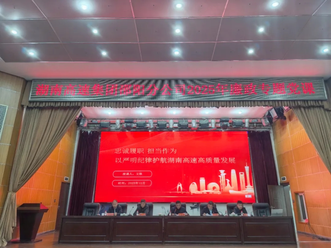 筑牢廉洁防线 护航项目发展——湖南高速物流公司交... 2025-11-19为深入贯彻落实上级党风廉政建设和反腐败工作部署,严格履行职能监督责任,推动廉政建设与项目管理深度融合,11月14日,湖南高速物流发展有限公司(以下简称“物流公司”)交通组织事业部组织临岳长项目部、株耒耒...