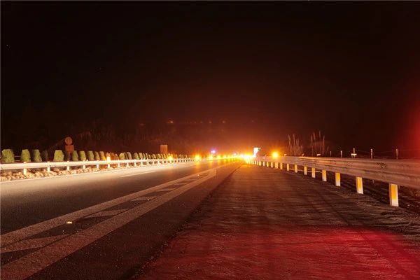 在五盖山路段上线的声光设备及路面设施 郴州分公司 供图