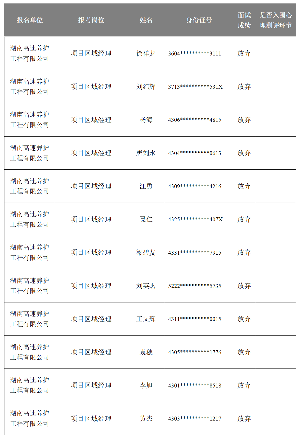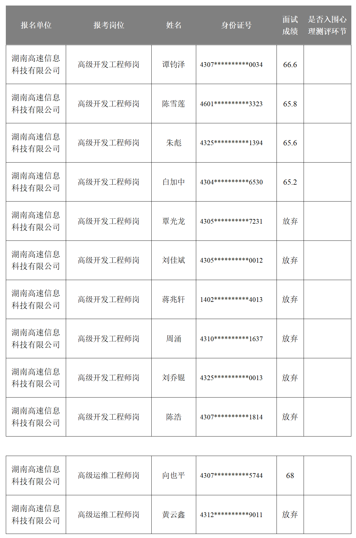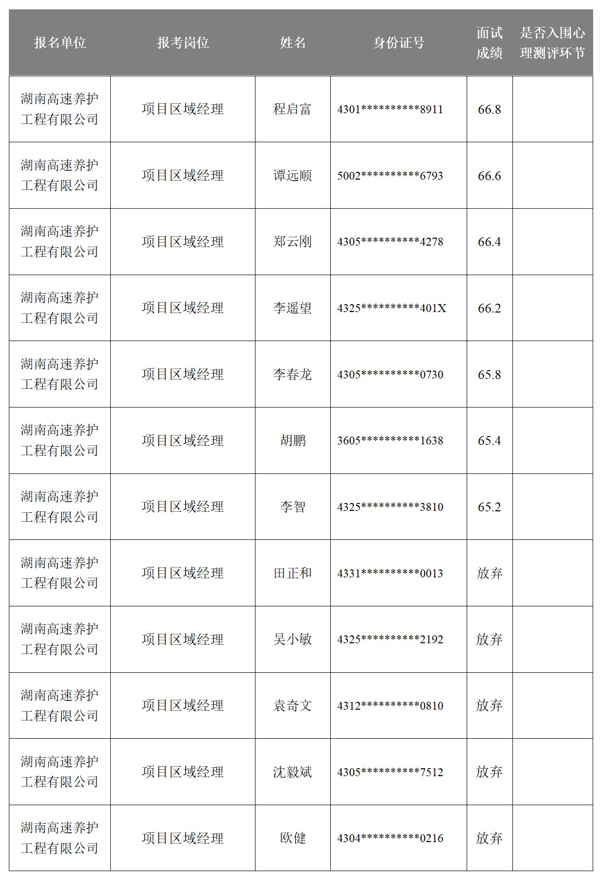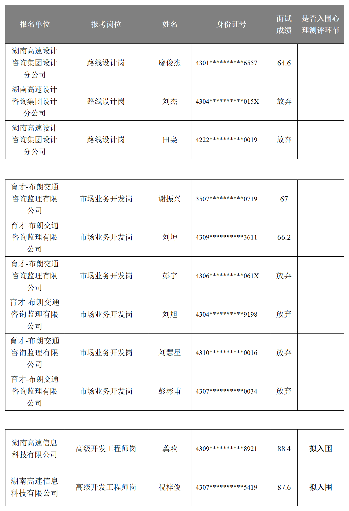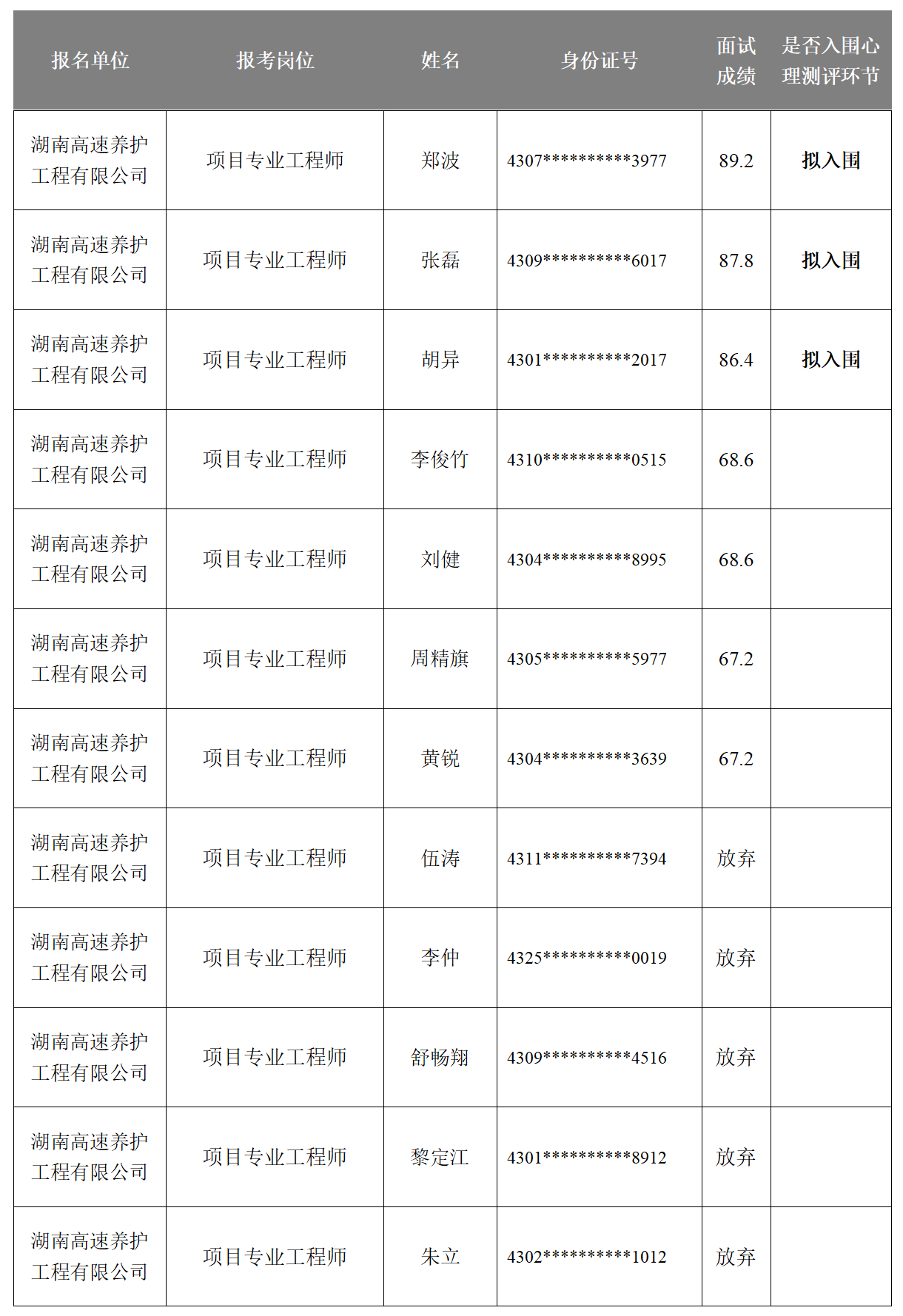 湖南省高速公路集团有限公司2025年长期公开招聘成绩公示