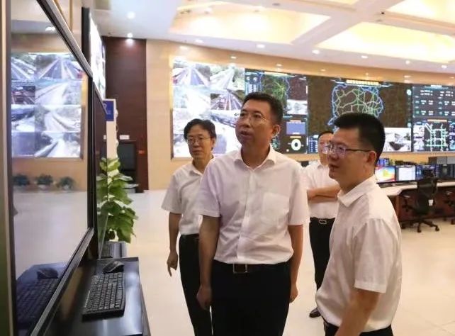 在湖南高速公路路网运行监控指挥中心,省总工会党组书记、副主席何俊峰了解节假日路网运行情况