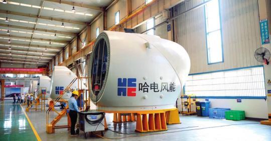 湖南兴湘投资控股集团有限公司与哈尔滨电气集团有限公司共同出资设立的哈电风能有限公司,致力打造成为“中国最好、世界一流”的风电产业系统方案供应商(2021 年10 月摄) 胡玉洁摄